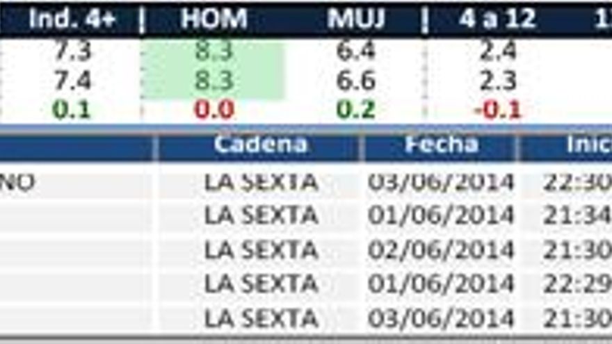 6.- laSexta (7,4%) sube una décima