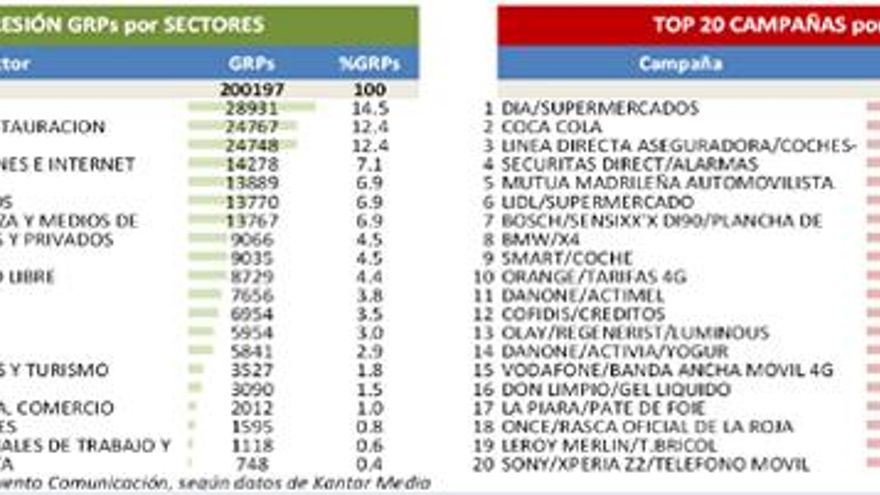 A continuación los ránkings de ANUNCIANTES, MARCAS, CAMPAÑAS, SECTORES Y SPOTS por GRPs: