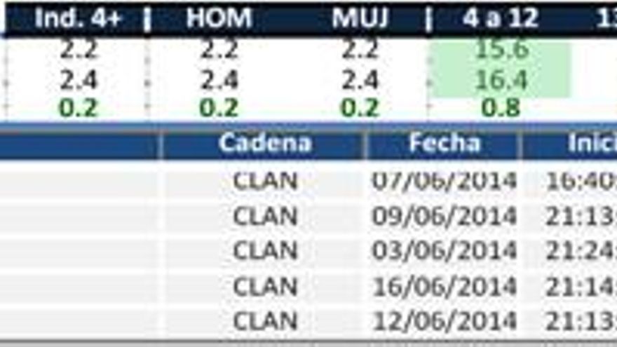 12.- Clan (2,4%) sube dos décimas