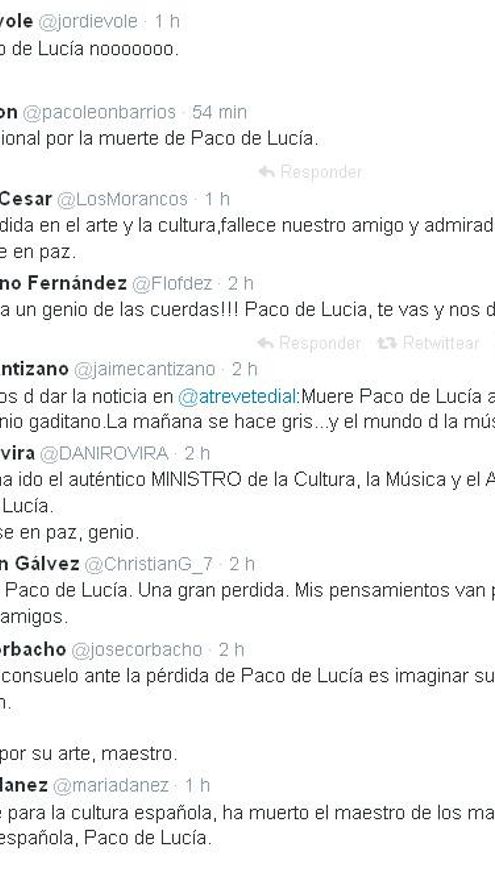 El mundo de la música y de la TV llora la muerte de Paco de Lucía