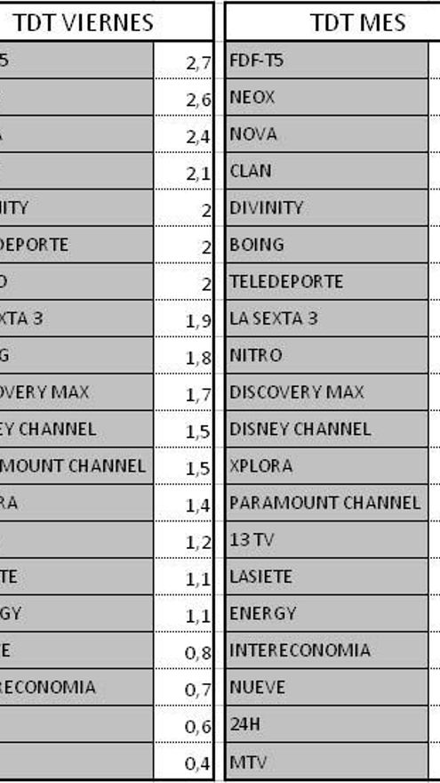 Los 10 programas más vistos en la TDT del viernes 8 de noviembre