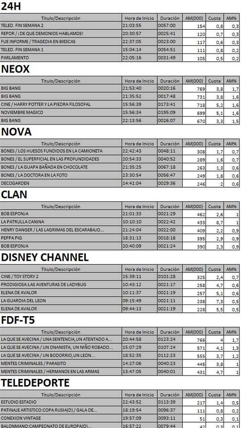 Audiencias TDT domingo 06/11/2016