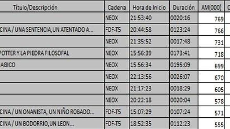 Los 10 programas más vistos del domingo en la TDT