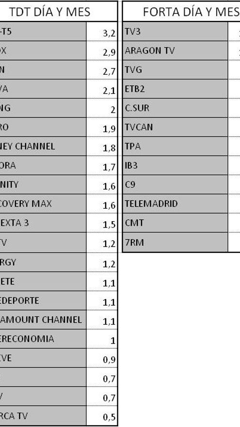 Audiencias TDT y Forta