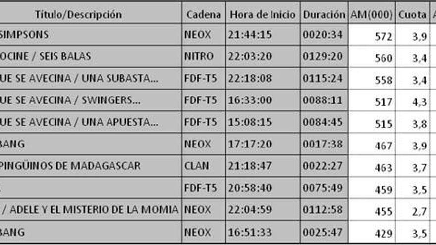 Los 10 programas más vistos en la TDT del lunes