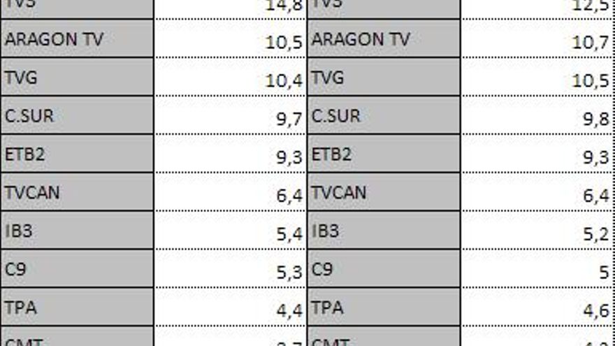 Audiencias autonómicas jueves 7 de noviembre