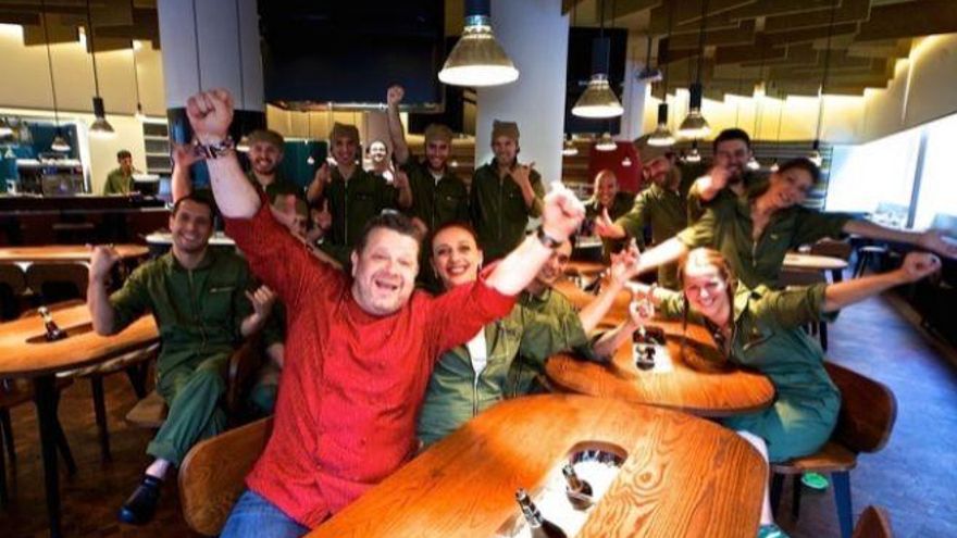 *Chicote, con Inma (justo detrás suya) y el equipo del 'Yakitoro'