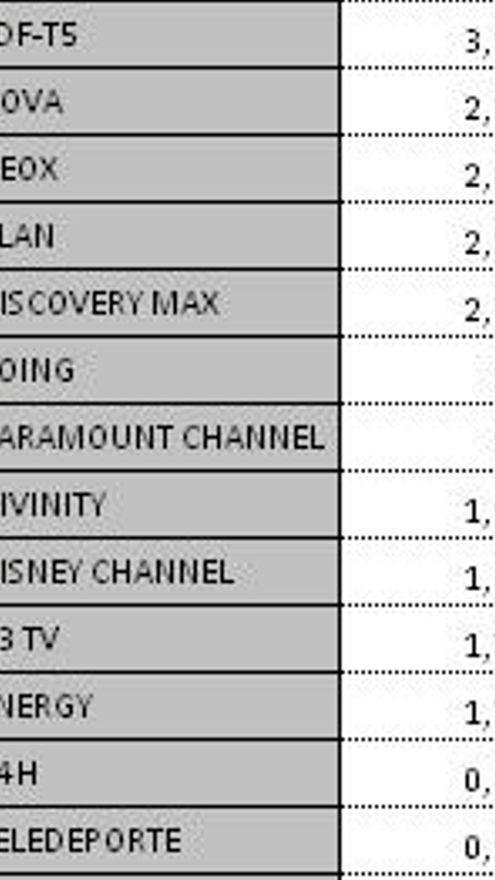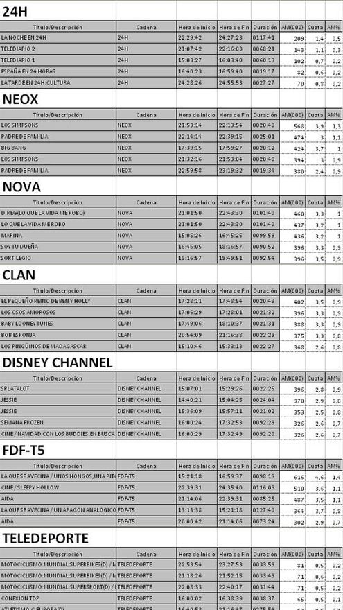 Ránking por cadenas del lunes