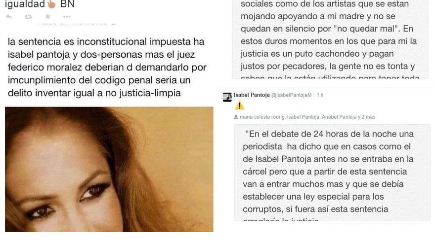 Además de expresar que Isabel Pantoja está siendo usada como “cabeza de turco”, muchos de sus tuits también hacen referencia a la falta de igualdad entre el trato a su madre y a la Infanta Critina, hermana del Rey.