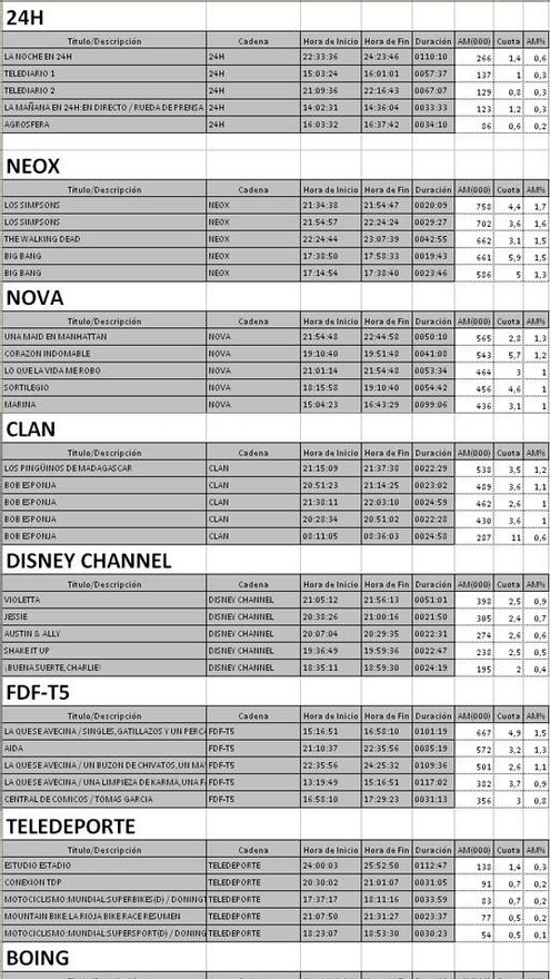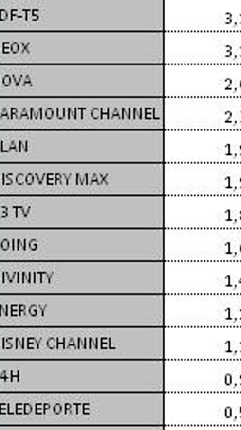Top 5 programas por cadenas