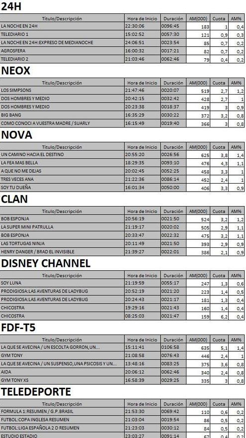 Audiencias completas nuevas cadenas de la TDT