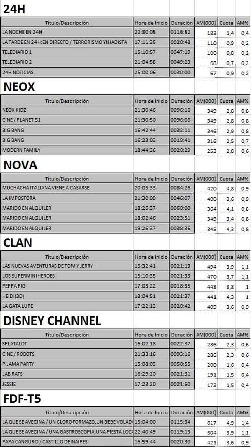 Audiencias TDT viernes 26/06/15