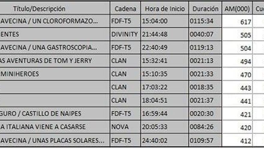 Los 10 programas más vistos del viernes en la TDT