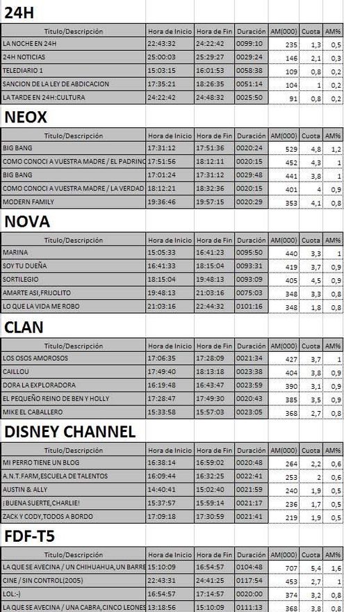 Top 5 programas por cadenas