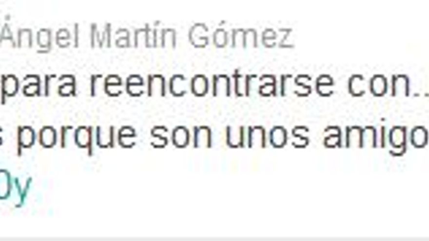 La presentadora y actriz asistió a la obra de teatro Nunca es tarde que representa actualmente Ángel Martín en Madrid, donde se hizo esta instantánea que han publicado ambos en su Twitter.