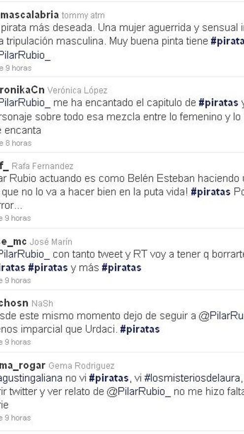 Pilar Rubio, que dedicó todo el estreno de la serie a “twittear” comentarios sobre la serie, no pudo evitar la multitud de comentarios críticos con su interpretación. Además, algunos espectadores se quejaban de que la actriz y presentadora enviaba demasiados mensajes. “¡Me está saturando el Twitter!”, protestaba un usuario.
