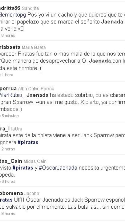 Aunque casi toda la expectación se dirigía a las críticas que recibiría Pilar Rubio en su debut como actriz, lo cierto es que fue Óscar Jaenada quien acapara más comentarios negativos. Se podría decir que la mayoría no ha tenido “misericordia” (nombre del barco pirata) con el actor de ‘Camarón’, a quien acusan de imitar demasiado a Jack Sparrow, el famoso personaje de Johnny Depp en ‘Piratas del Caribe’, película en la que el propio Jaenada tiene un pequeño papel en la cuarta entrega.
