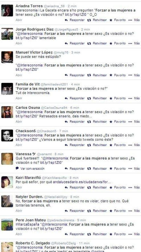 Polémico tuit de Intereconomía: “Forzar a las mujeres a tener sexo, ¿es violación o no?”