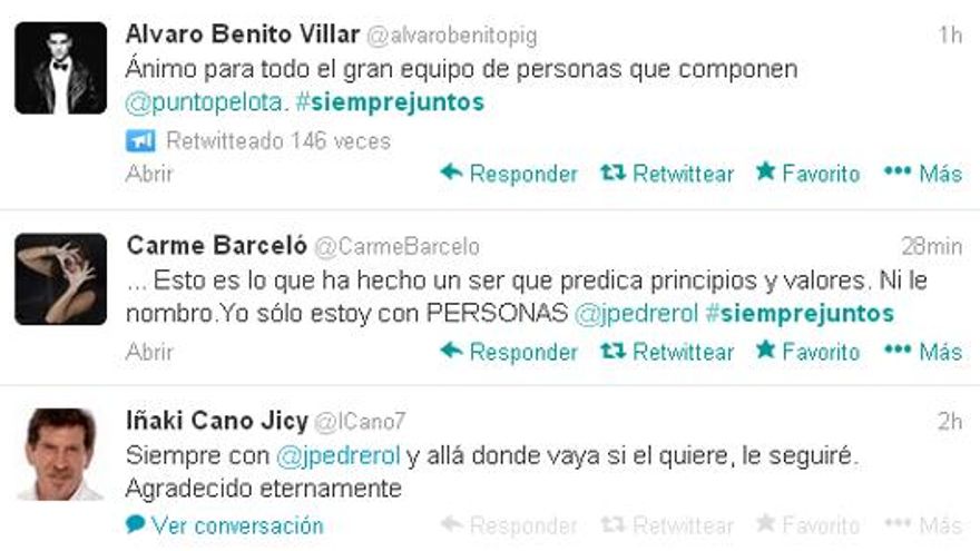 Según la cadena, Intereconomía ha decidido romper relaciones con el presentador después de no llegar a un acuerdo para continuar adelante con el programa. La cadena, sin embargo, seguirá utilizando la marcaPunto Pelota. Josep Pedrerol era el productor del programa. La cadena defiende su posición de no dejar pasar al presentador a las instalaciones diciendo que, como cualquier persona que ya no pertenece a la empresa, “no puede entrar”.