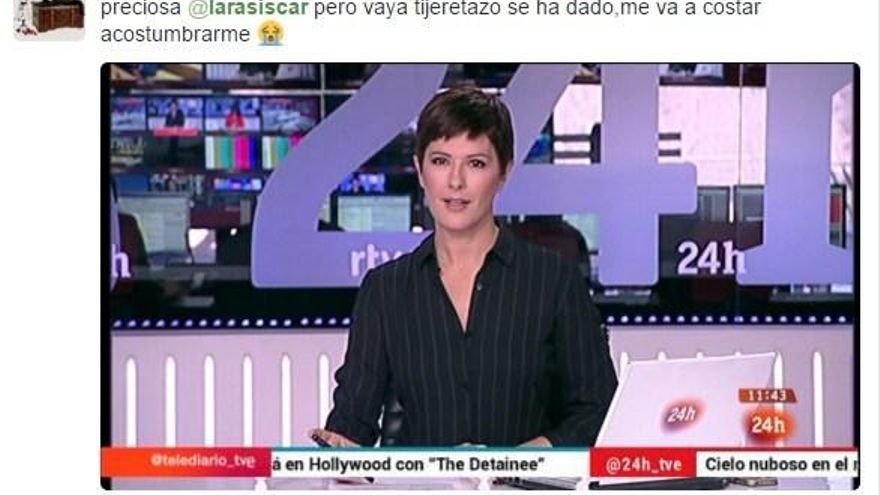 La expresentadora del Telediario de Fin de Semana Lara Siscar, que ha retornado al Canal 24 horas, ha sorprendido a los espectadores este martes con un radical cambio de look.