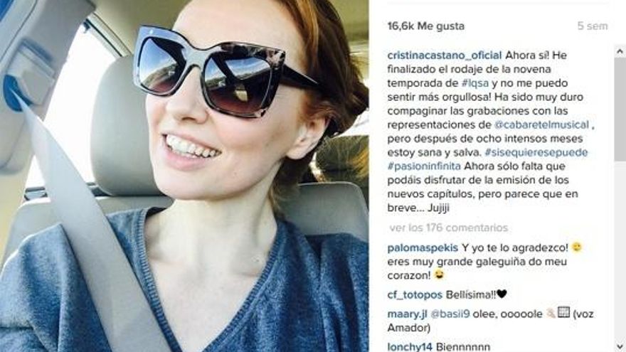“Ahora sí! He finalizado el rodaje de la novena temporada de #LQSA y no me puedo sentir más orgullosa! Ha sido muy duro compaginar las grabaciones con las representaciones de 'Cabaret', pero después de ocho intensos meses estoy sana y salva. #sisequieresepuede #pasioninfinita”.