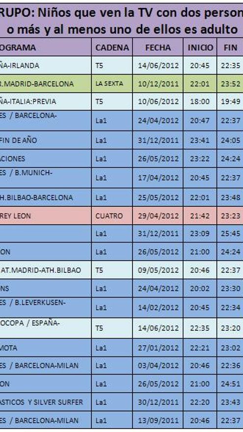 En cuanto a los grupos en los que el target principal y común denominador a todos es el infantil, vemos que el deporte también manda, porque los “mayores” parecen imponer su ley. Pero la principal diferencia es la inclusión de otros géneros aparte del fútbol, como es el cine (“El rey León” o “Los cuatro fantásticos”) o el humor ('La Hora de José Mota0), que no aparecen reflejados en los otros dos grupos más adultos.