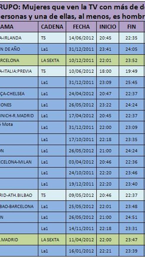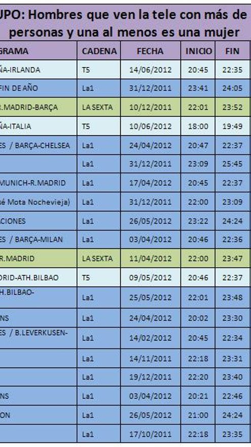 * Target Masculino más femenino (grupo) : Hombres que ven la tele con más de dos personas (grupo) y una, al menos, es una mujer.