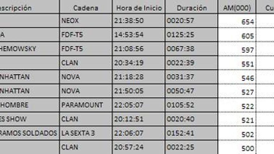 LOS 10 PROGRAMAS MÁS VISTOS DEL DÍA EN LA TDT