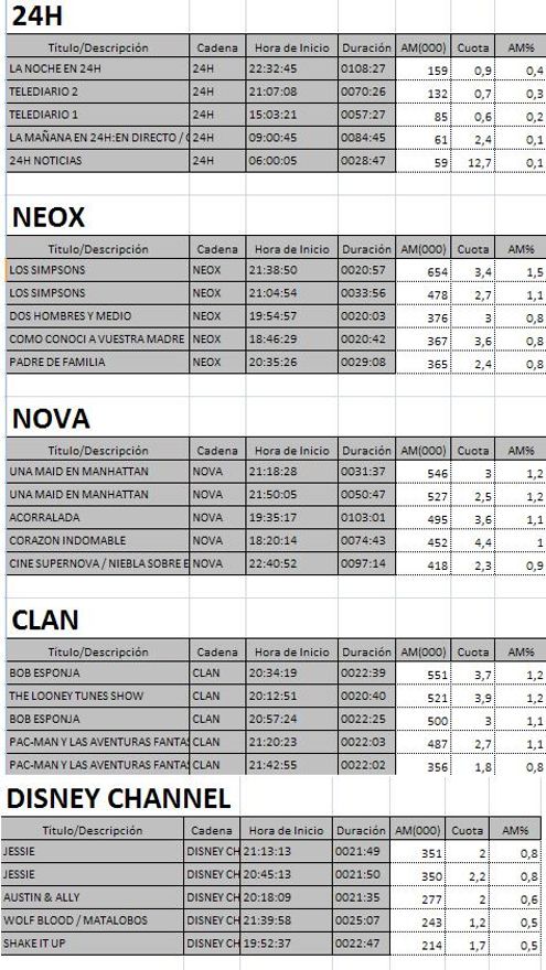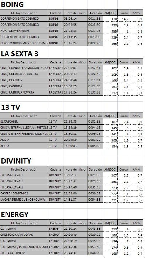 LOS 5 PROGRAMAS MÁS VISTOS DEL DÍA EN CADA CADENA