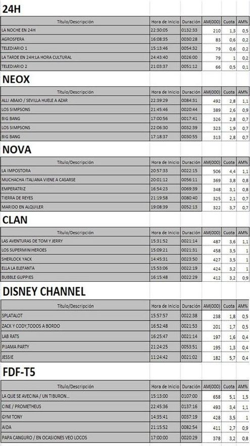 Top 5 programas por cadenas del lunes en la TDT