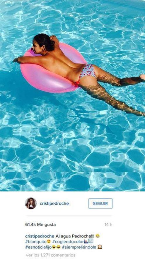 Cristina Pedroche tiene asumido que cualquier foto 'sexy' que comparta se convierte en viral y noticia. La presentadora de 'Pekín Express' ha compartido este fin de semana la primera imagen de su verano: en la piscina, boca abajo y solo con la braguita del bikini.