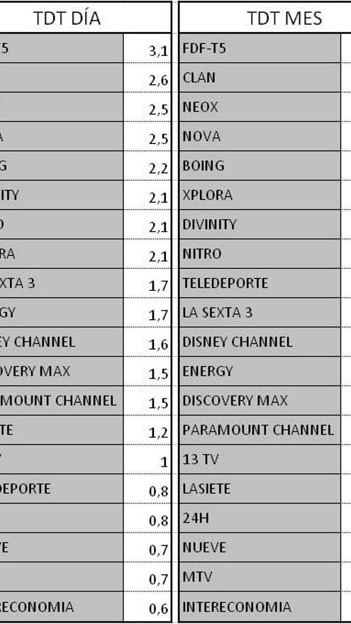 Audiencias TDT y Autonómicas
