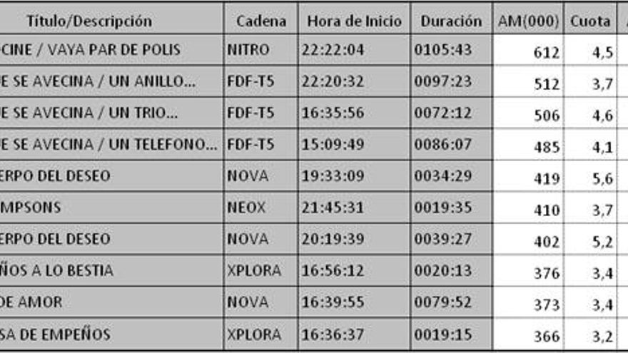 - 'Tiki Taka' (de 00:00 a 02:30 horas) en Cuatro: 6.7% y 459.000