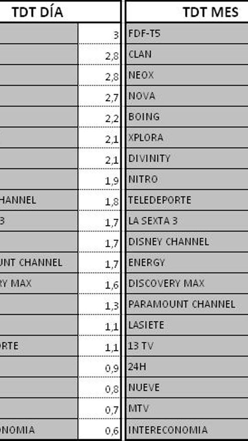 Audiencias TDT y Autonómicas