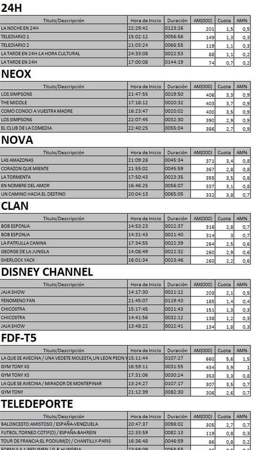 Audiencias completas nuevos canales de la TDT