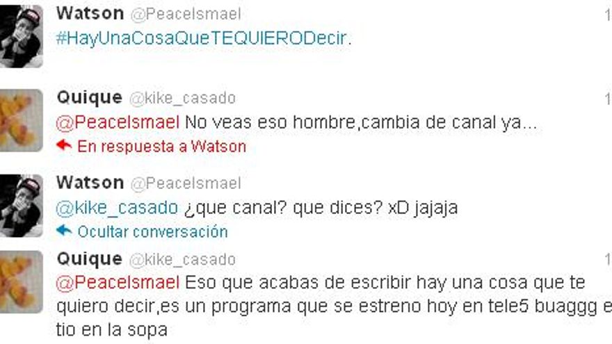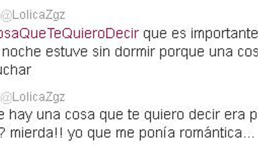 “¡Ah! Que lo de Hay una cosa que te quiero decir era un programa. Yo que me ponía romántica…” El hashtag creado por el programa también daba pie a muchos a declararse y llevar la esencia del espacio a Twitter. Algunos se dieron cuenta de la verdadera razón del TT y otros siguieron utilizándolo como un juego de palabras de un día cualquiera en la red social.