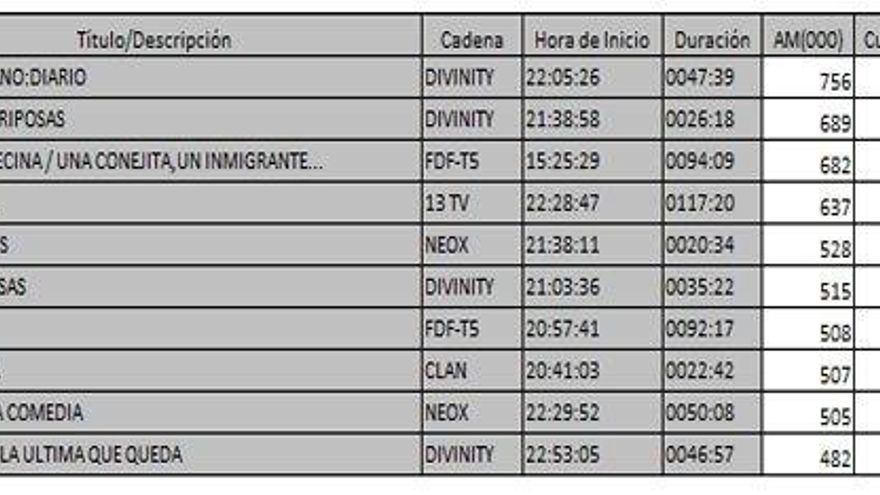 Los 10 programas más vistos del lunes en la TDT
