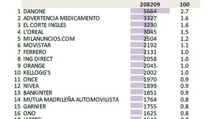 Las advertencias de medicamentos (con 3.327 GRPS) y El Corte Inglés (3.230) completan el podio de las marcas con mejor rendimiento publicitario de este mes.