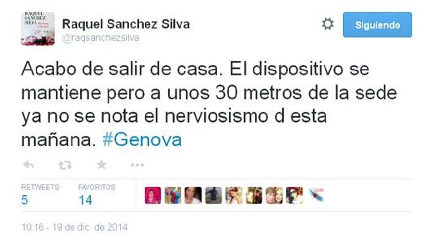 Raquel Sánchez Silva ha sido testigo del ataque que ha sufrido este viernes 19 de diciembre la sede del PP en la calle Génova. La presentadora de Mediaset ha dado su testimonio en directo, vía telefónica, en el matinal de informativos de Telecinco: