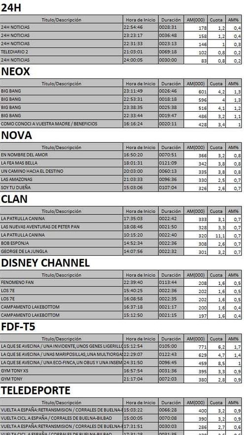 Audiencias completas de las nuevas cadenas TDT