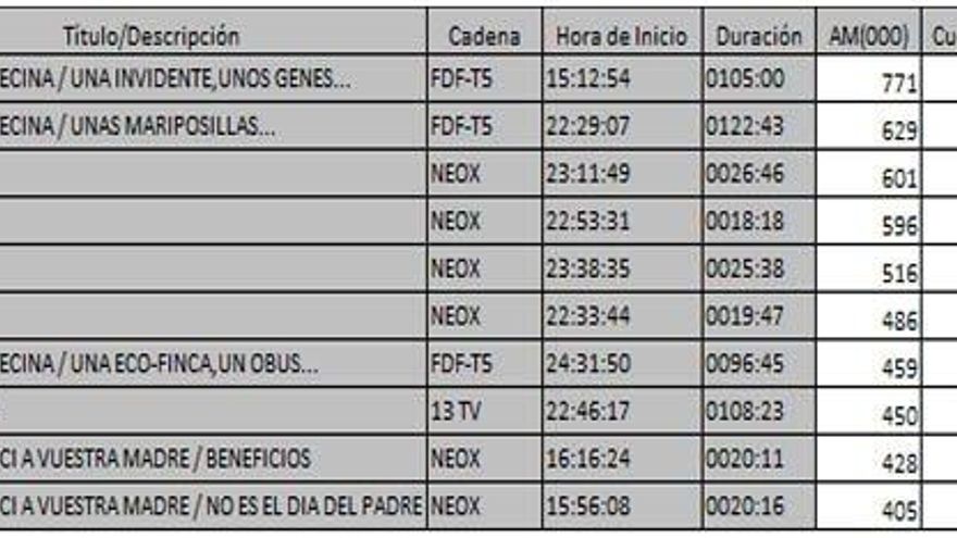 Los 10 programas más vistos del jueves en la TDT