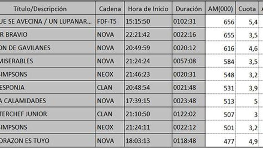 Los 10 programas más vistos del viernes en la TDT