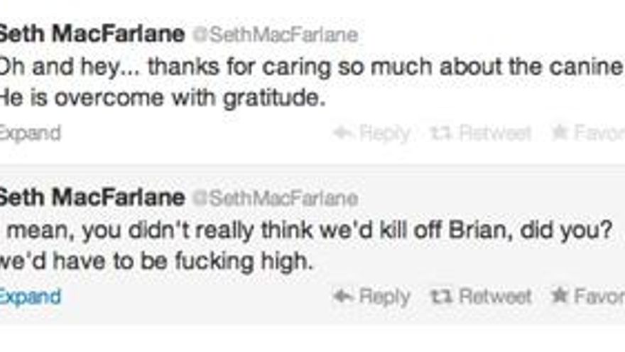 Tras toda la polémica generada a partir de la muerte del personaje del perro Brian Griffin en la comedia ‘Family Guy’ (‘Padre de familia’), llevada a cabo hace tres semanas en los Estados Unidos, el personaje interpretado por el creador del programa, Seth MacFarlane, regresó a la vida, según recoge Terra.