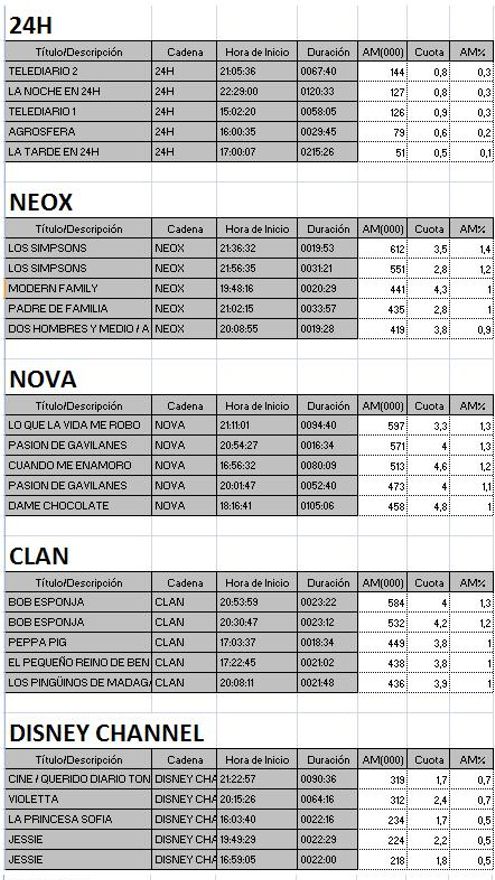 LOS 5 PROGRAMAS MÁS VISTOS DE LA TDT EN CADA CADENA
