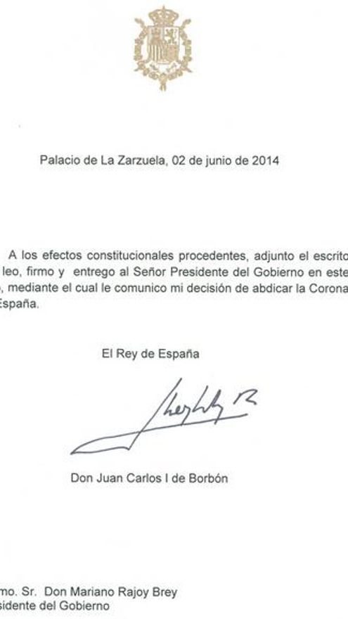 El texto y las fotos de la abdicación del Rey: Así la firmó y la entregó