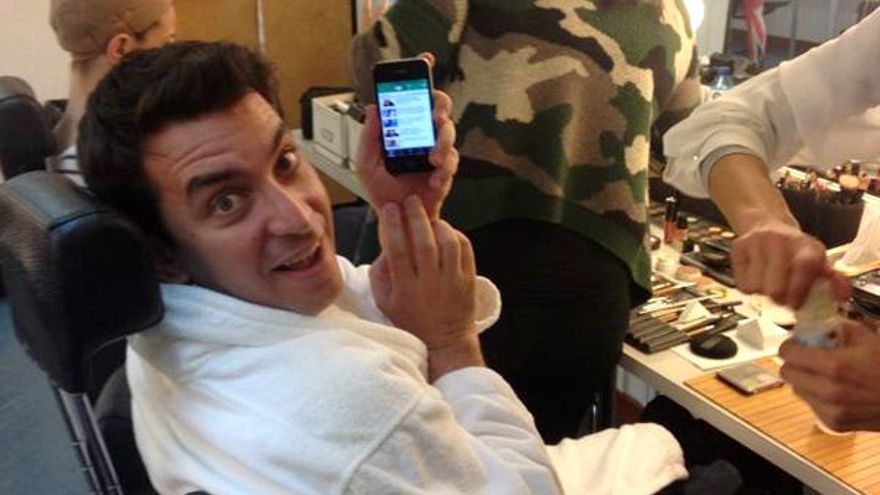 *Arturo Valls lee Vertele mientras le caracterizan de Sabrina