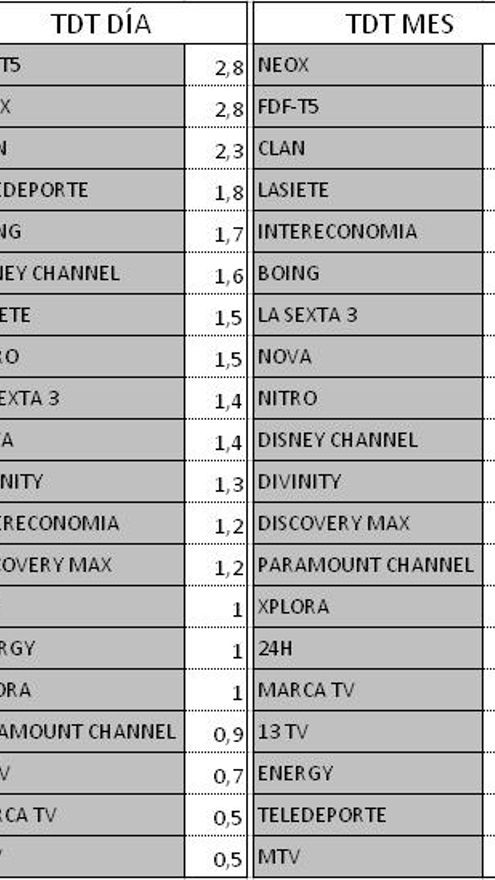 Audiencias TDT y Forta