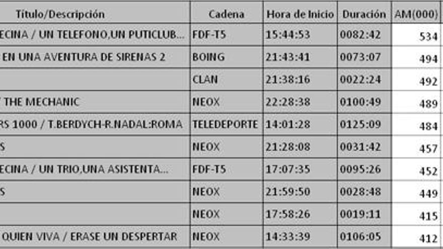 Los 10 programas más vistos de la TDT