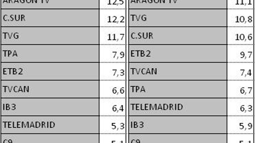 Audiencias autonómicas del viernes