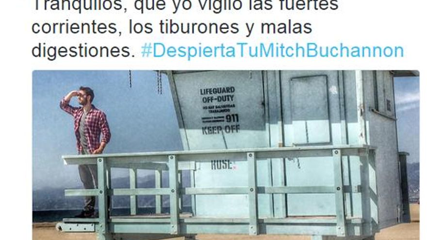 Rovira también se hizo una foto a lo 'Vigilantes de la playa', con la que quiso recordar a Mitch Buchannon, el protagonista de la serie liderada por David Hasselhoff: “Tranquilos, que yo vigilo las fuertes corrientes, los tiburones y malas digestiones. #DespiertaTuMitchBuchannon”, comentó en un tweet.